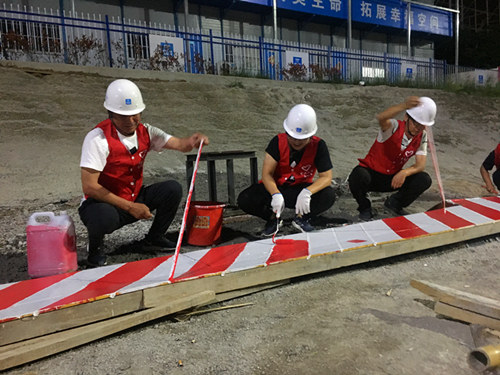 自復工復產以來,項目部加班加點推進工程進度,爭分奪秒彌補因疫情延誤的工期。全體管理人員秉承對項目部的高度責任感,夜以繼日拼搏奮斗。此次領導帶班檢查中,項目經理匡家祥率領班子團隊,為電纜蓋板、下水道蓋板、外架鋼管涂刷紅白警示油漆。商務經理曹池加班至深夜也毫無怨言、安全總監王銀喜濕透衣衫仍干勁十足、生產經理胡義偉低調做事默默奉獻,辦公室主任馬磊辛勤付出追求極致,項目經理匡家祥說:“我們項目的精神內核,就是敢打勝仗、能打勝仗,今天班子義務勞動只是項目精神的一個縮影,我相信,只要齊心協力勁往一處使,我們的項目定能不斷做優做強,實現集體豐收的美好愿景!