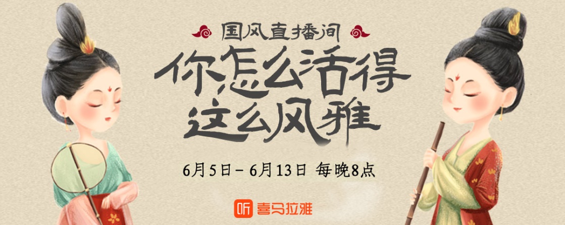 近年來,優秀的傳統文化越來越受到年輕人的關注與喜愛,精致風雅的生活方式成為不少人追求的新風尚。最會生活的古人蘇東坡說:有茶,有香,有晨昏……散散步,賞賞樂,飲飲酒,這樣的中式生活,才是中國人最常見的生活方式。喜馬拉雅國風直播間特邀多位非遺傳承人,帶聽眾跨越歷史長河感受國風的魅力。第一場直播由民俗生活家李林和奇葩說辯手李思恒共同帶來,他們用風趣幽默的語言為大家揭秘端午節的隱藏習俗;古琴傳承人楊致儉和古琴生活家怡玲則邀請大家共同欣賞幾近失傳的古琴曲,透過直播間“高山流水覓知音”;還有中國茶文化代言人鮑麗麗,作為品茶生活家,她將泡上一杯最美中國茶,教授大家如何品茶。