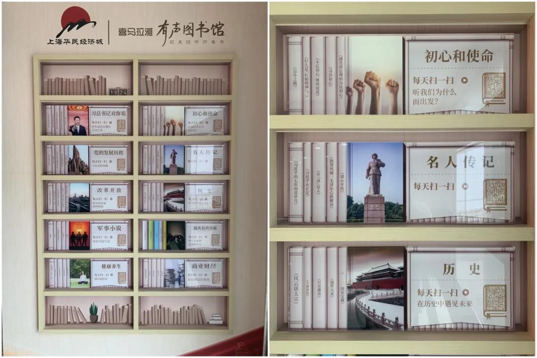 這個“有聲圖書館”位于華新鎮華民經濟城大廳內,可以讓辦理業務的客戶和公司黨員合理利用等侯、午休等時間,即掃即聽,免費“聽”書。據了解,該圖書館設有習總書記對你說、黨的發展歷程、黨員的初心使命、改革開放歷史等學習“四史”黨建板塊;同時兼顧不同年齡層人員需求,增設商業財經、最火有聲小說、健康養生等板塊。目前,“有聲圖書館”共有15個板塊5000多個圖書音頻和語音節目。