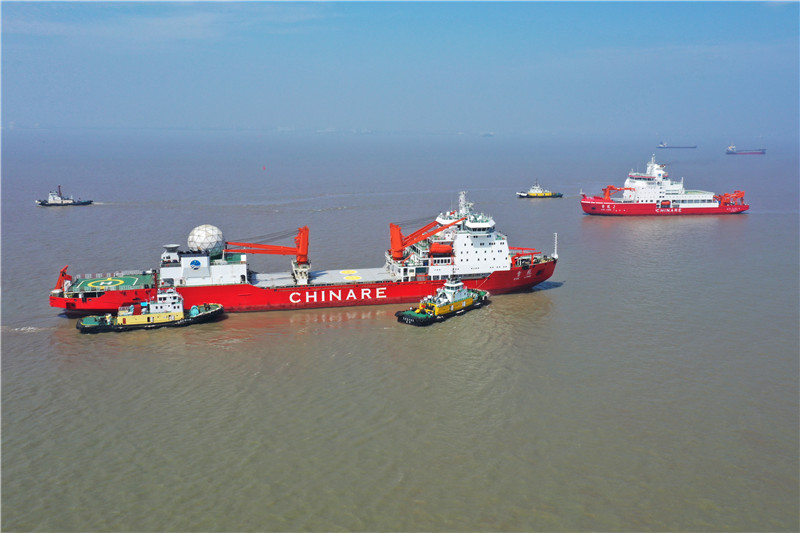 “雪龍”號與“雪龍2”號在江南造船碼頭水域相會