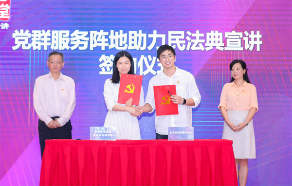 為助力民法典等普法宣講進社區、進樓宇、進園區,長寧區各級黨群服務陣地將敞開大門提供有力陣地支撐;顒蝇F場,區黨建服務中心和區司法局依法治區秘書科(普法與依法治理科)進行簽約,約定共同努力,將各級黨群服務陣地打造成為“家門口”的法治宣講陣地,廣泛開展民法典等普法工作,打造黨建引領、法治支撐的品牌。
