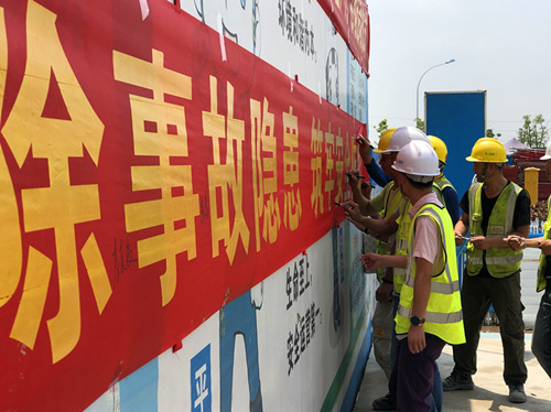 上午十時許,項目全體人員在現場安全講評臺前集合,甲方代表、監理代表、項目經理、安全總監、分包單位代表分別上臺發言,向大家強調了安全生產的重要性,要嚴格貫徹“不傷害自己,不傷害他人,不被他人傷害,保護他人不被傷害”的四大原則。全國安全生產月活動熱烈開展,通過不斷的改善、固化和創新,為大家創造更安全的生產環境。