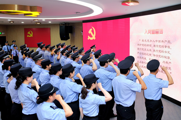 6月23日下午,在建黨99周年來臨之際,上海市公安局寶山分局組織新、老黨員代表前往寶山區黨建服務中心進行集體宣誓。