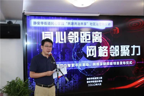 為積極貫徹落實上海市委十一屆九次全會重要會議精神,響應靜安區委“基石工程、共同家園”的創新社會治理理念,6月30日,靜安寺街道在街道黨群服務中心,舉辦了“同心鄰距離 網格鄰聚力——社區服務智慧平臺啟動、網格深耕四級項目發布儀式”,區委常委、副區長劉燮出席活動,區民政局、區地區辦、靜安寺街道相關領導及下轄居民區黨總支書記、居委會主任、居民區網格長代表以及街道部分為老服務機構、社區單位等參加本次活動。街道辦事處主任張峰主持會議。