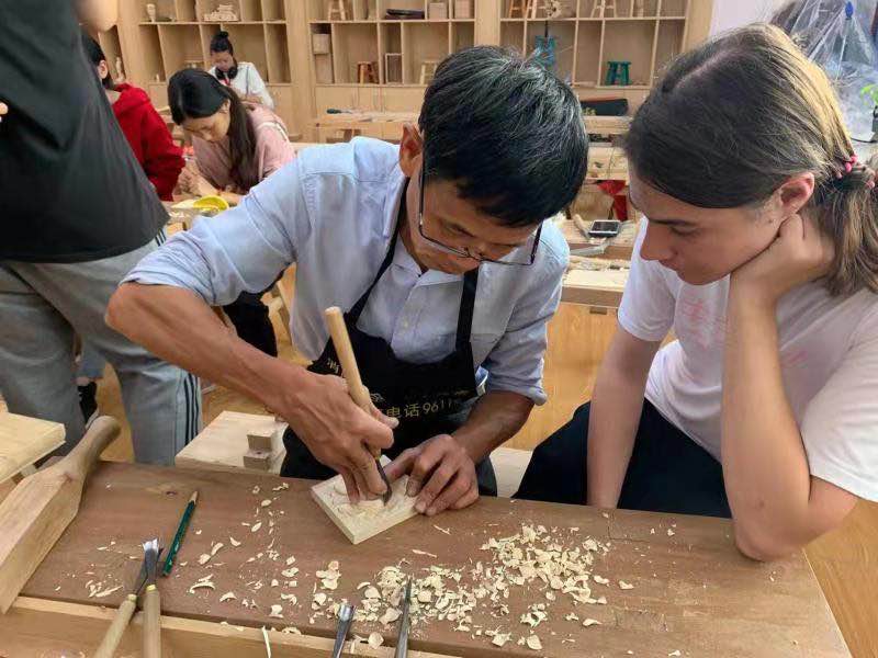 其中德國留學生和泰國留學生還在“奉城木雕”非遺傳承人工作室研習多日,他們不僅在徐華兵師傅的指導下做出打動人心的創意作品,還將木雕文化、中國文化向自己的國家進行傳播。