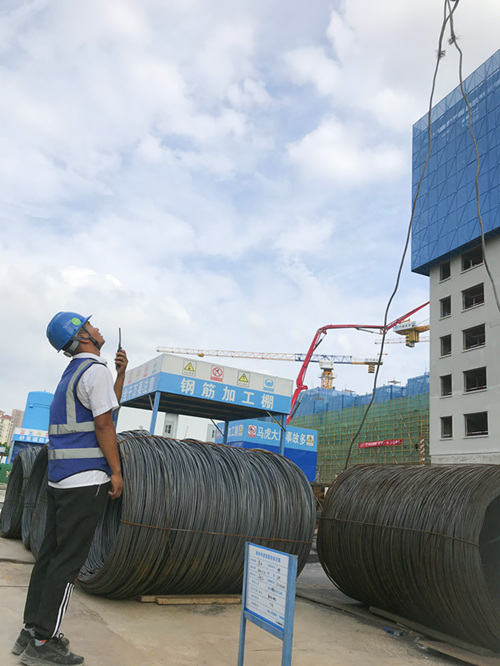 百水保障房采用裝配式建造,項目上有大量的預制構件,起吊時難度大于一般工程。拴鉤時,司索就要仔細檢查吊具是否完好,拴好后再次檢查,然后發出起吊指令。中建二局項目部管理要求所有吊裝作業執行“三三三制”原則,即起吊離地30公分時,要停頓30秒,同時人員遠離3m外,確保試吊裝無誤后,才能繼續吊裝。
