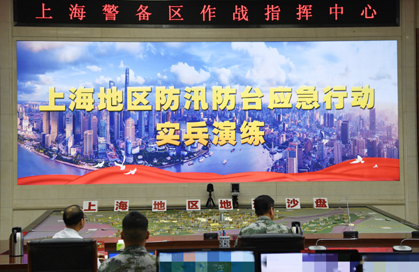 “嘟嘟嘟……”14:30分,伴隨著急促的報警聲,上海市應急管理局汛情通報傳送至警備區值班室,“超強臺風已經于浦東至崇明一線登陸,對城市運行和人民財產安全造成嚴重危害!本瘋鋮^指揮員迅速進入戰位,第一時間組織民兵海防哨所對海雷達偵觀長江口水域及沿海堤岸情況,依托智慧城市“一網統管”,實時調取城市主要干道交通運行情況,為研判災情輔助決策。