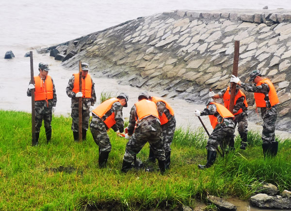 7月10日下午,為檢驗對汛災情的監控報知能力、檢驗各級各類指揮手段組網運用能力,檢評民兵綜合應急連快速出動和遂行任務能力,上海警備區組織6個區10余支民兵應急分隊展開防汛防臺應急行動演練。