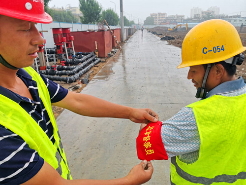 為全面提升工人安全生產意識,保證現場安全生產,近日,中建二局華東公司靈璧縣羅河花園小區項目推出“違章站崗接力賽”活動。