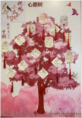 疫情防控期間,安全安保黨支部組織黨員們開展了心愿樹“為武漢祈!被顒,祝愿武漢早日“春來花開”。