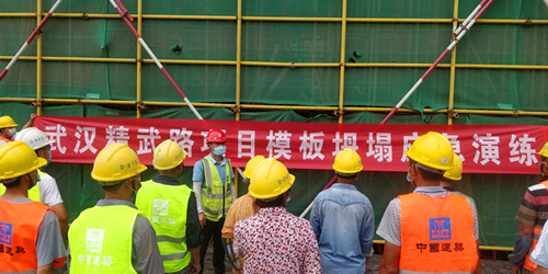 2020年7月2日下午,中建二局華東公司武漢精武路項目為了提高作業人員及管理人員的安全意識,對工地可能發生的模板坍塌事故舉行了模板坍塌應急救援演練,這次演練由項目安全總監劉賢方負責主持。