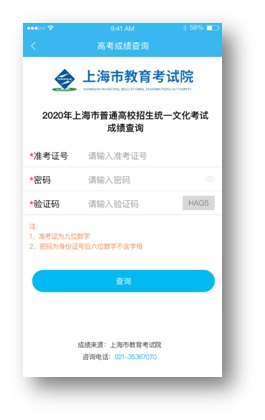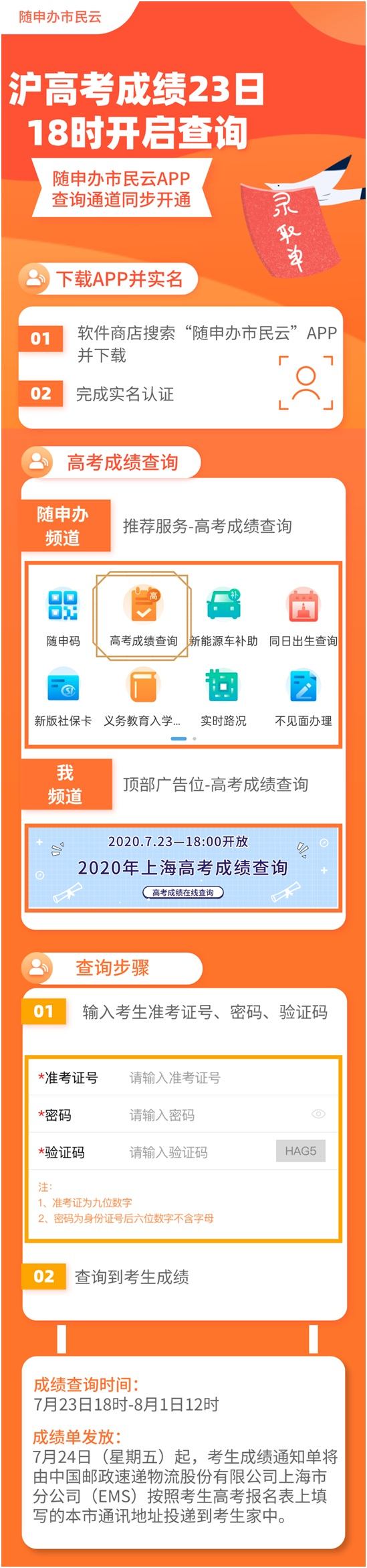 人民網上海7月23日電 2020年上海市普通高校招生統一文化考試已于7月9日圓滿結束。市教育考試院將于7月23日(星期四)18時至8月1日(星期六)12時,開通2020年上海市普通高校招生統一文化考試成績查詢通道。屆時,各位考生、家長可通過登錄 “上海招生熱線”網站、隨申辦APP等多種方式查詢高考成績。