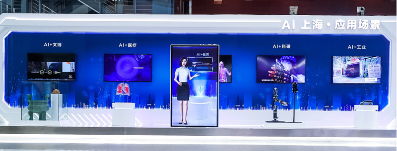 這位數字人“小糖”由全球領先的人工智能平臺公司商湯科技定制化打造,是現場“AI上!脠鼍啊闭古_的專屬講解員。依托于展臺前的滑動屏幕,“小糖”可以在五大應用展項前任意移動,栩栩如生、惟妙惟肖地為觀眾介紹和講述AI技術在醫療、教育、文博、工業、科研等領域的應用和落地故事。