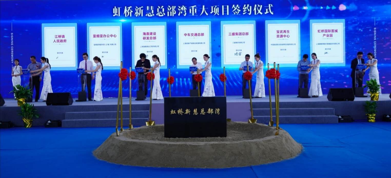 7月23日上午,虹橋新慧總部灣集中開工暨重大項目簽約儀式在嘉定江橋舉行,主要涉及該區域一期6個產業項目集中開工,同時簽約12個重大項目,總投資額近45億元,將進一步促進江橋鎮區域產業能級創新升級,營造總部高地聚集氛圍,樹立總部園區新名片。
