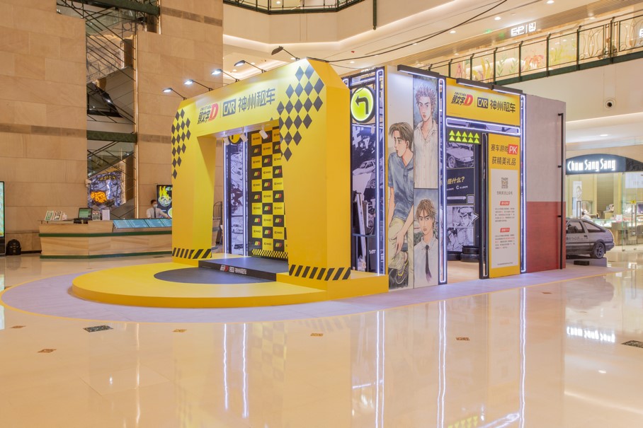 “神州租車X頭文字D”快閃店“開業”,在商場里“開賽車”