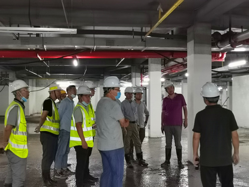 業主項目負責人針對目前項目情況做出了詳細介紹,區域總裁吳迪對項目目前的施工情況表示充分的認可與肯定。由于近期雨情汛情較為嚴重,吳迪還表示要做好汛情防控、及時做好排水措施,注意施工安全。