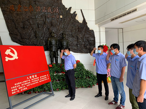 隨后,全體黨員整齊列隊,胸佩閃閃黨徽,高舉右拳重溫入黨誓詞:“我志愿加入中國共產黨,擁護黨的綱領,遵守黨的章程……”聲音洪亮,鏗鏘有力,一字一句間皆透露著身為共產黨員的自豪和對黨的忠誠。