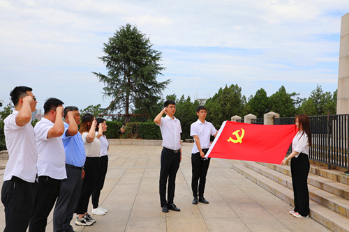 蒼松翠柏掩映下的濟南戰役紀念館紅旗飄揚,莊嚴肅穆;巍然屹立的革命烈士紀念塔上的鎏金大字熠熠生輝,塔頂的紅星閃爍,照耀著為守衛濟南英勇犧牲的革命烈士。黨員同志們心懷敬意,向革命烈士紀念塔獻上鮮花,并拉起黨旗,重溫入黨誓詞,接受黨性洗禮。
