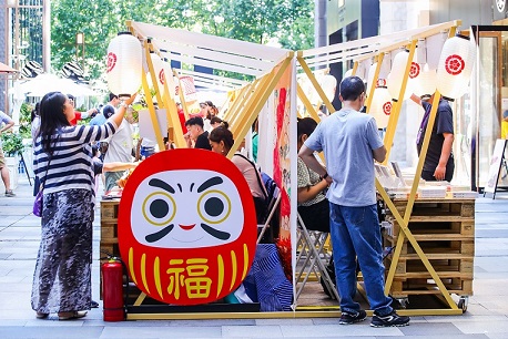 據介紹,和風集市共由20個品牌組成,集市攤位都有特別設計,體現京都深夜街頭的“屋臺”造型。內容上則聚焦日本特色風情,從小吃啤酒到和風小物、日式美妝都一應囊括。為了讓體驗更完整,京都之家還特別準備了夏日浴衣換裝,男女款皆有。仲夏之夜換上京都服裝,游玩和風集市,每個整點還能欣賞和風演出,體會日本傳統技藝與美感。