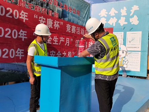 首先,在演練前,項目安全總監王德全講解火災現場應急處置方案,消防安全常識、滅火器原理、施工現場的疏散路線、滅火基本操作方法以及注意事項。講解完后進行現場演練,讓每一個人都親自體驗滅火的過程,按照滅火的步驟和方法將火堆燃起的濃煙大火迅速撲滅。演練中,每一位員工親自體驗如何正確使用滅火器,在火災發生時如何采取應急措施和進行自救。