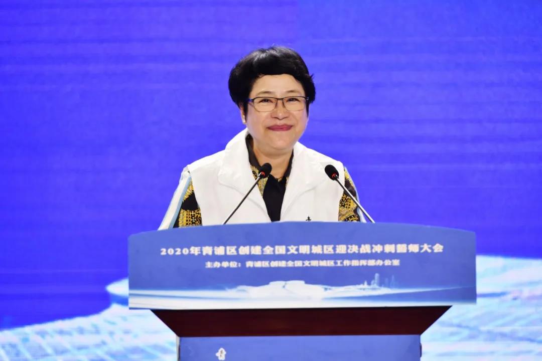 趙惠琴作動員講話指出,五屆區委以來,青浦深入貫徹落實“人民城市人民建,人民城市為人民”的重要理念,創造性地提出了“新青浦,新生活”的奮斗主題和的主要目標,致力于為青浦打造一個高質量的新青浦,創造一種高品質的新生活。為此,在服務兩大國家戰略的大背景下,在上海建設社會主義現代化國際大都市的大目標下,全面謀劃、提升青浦整體的城市定位和發展格局,作出了實施全面跨越式高質量發展的戰略部署,全力打造上海的門戶城市、長三角的示范城市和面向全球的國際城市!吧虾VT”城市品牌是全面跨越式高質量發展主戰略的核心支撐,是展現新青浦新時期的發展水平和文明程度的新形象,創建全國文明城區對提升“上海之門”的城市品牌的吸引力、影響力和競爭力至關重要。