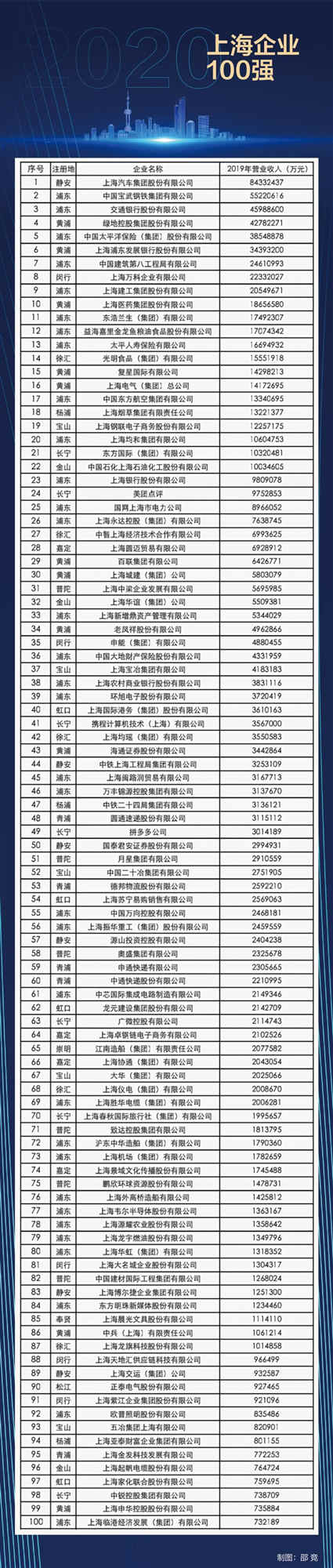 本次百強榜發布會由上海市企業聯合會、上海市企業家協會、上海市經濟團體聯合會和解放日報社聯合主辦。除了2020上海企業100強主榜單,上海制造業企業100強、上海服務業企業100強、上海民營企業100強、上海民營制造業企業100強、上海民營服務業企業100強和上海百強成長企業50強排行榜等也同時發布。