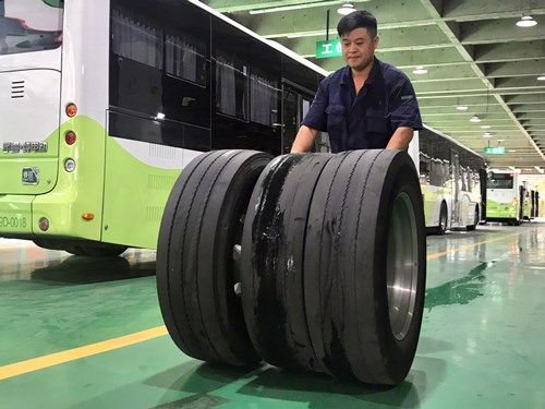 隨著持續高溫天氣的到來,申城已經進入“燒烤”季,公交車輪溫升高易使輪胎變形,導致輪胎爆破事件發生。為了保證市民乘車安全,巴士一公司修理車間胎工對97條線路1500余部公交車輪胎進行了全面安全檢查,確保輪胎氣壓保持在規定數值內,確保夏季行車運營。