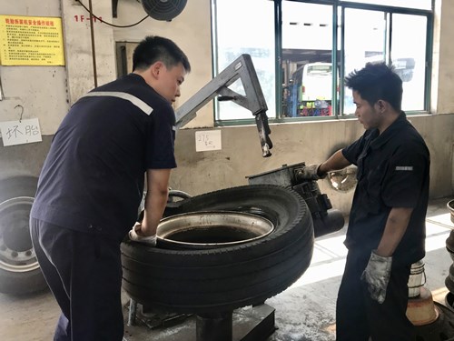 “高溫天,車胎氣壓是檢查的重點項目,確保胎壓不偏高,同時胎紋內有石子應及時處理干凈,一旦發現輪胎破損、偏磨、鼓包、裂痕等異常要及時報修和更換處理!卑緦贿呥M行車輛胎壓檢測一邊說道。布滿舊輪胎的工作間雖然有頂棚遮擋陽光,但一個輪胎重達200斤,要破拆需要劇烈的體力消耗,每天要翻動近百條輪胎,一上午下來衣服都被汗水浸透。包志岡笑稱,每天至少要換兩身衣服,換下來的衣服都濕的能擰出水來。