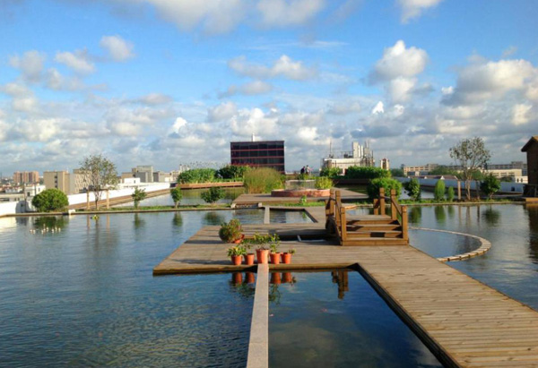 在位于上海川沙的開能環保凈水產業園里,小橋流水、景觀河道、親水平臺、植物濕地,作為一家主要開發制造凈水機的企業,開能健康科技集團股份有限公司更像是一個生態園。工廠內參觀的一大亮點,是一個全水回用負排放系統。從廁所、食堂排出的生活污水,通過植物吸解、屋頂有機菜園和綠化滲透,流至景觀河道,最后經過沙濾、碳濾等達到直接飲用的標準。從生活污水到飲用水,這樣的轉變讓不少游客感到驚訝。