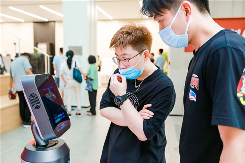 觀眾可以通過上海奧視達智能科技有限公司、施勒智能科技(上海)股份有限公司提供的人臉識別測溫安檢裝置,體驗快速測溫;上海提格機器人科技有限公司的迎賓機器人作為新一代陪伴機器人隊伍中的生力軍,現場展示了前臺接待、人臉識別、導覽講解、問路引領、語音對話、遠程維護等功能。