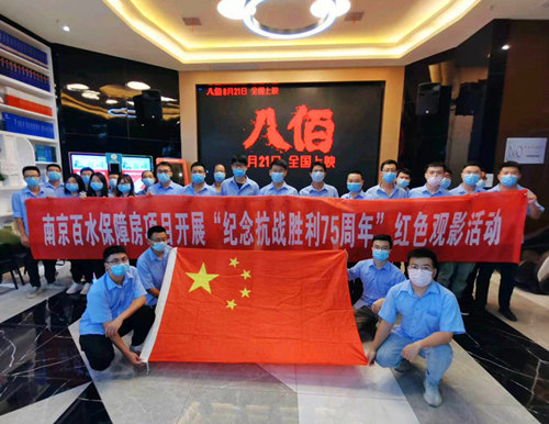 為紀念抗日戰爭勝利75 周年,進一步激發項目員工愛國情懷,在項目營造愛國愛企的濃厚氛圍,2020年8月20日,中建二局華東公司南京百水保障房項目黨支部和工會組織項目員工觀看電影《八佰》。