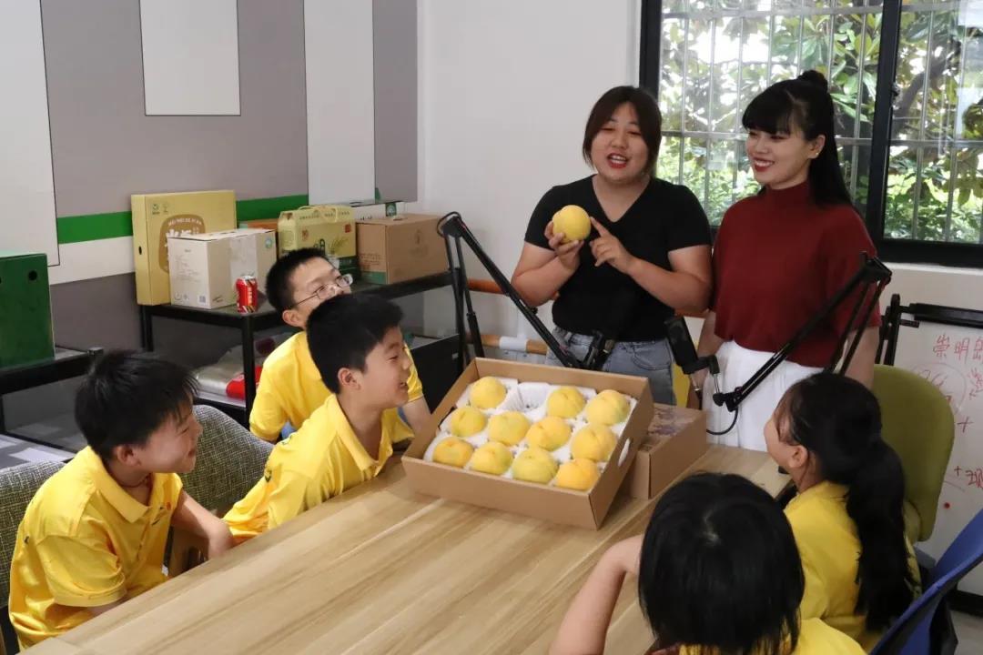 “大家知道這個桃叫什么名字嗎?這是我們崇明產的錦繡黃桃,吃起來特別甜、水分多……”來自建設小學五年級的學生陳文杰對著鏡頭嘗試賣黃桃,并通過淘寶平臺和網友進行互動。