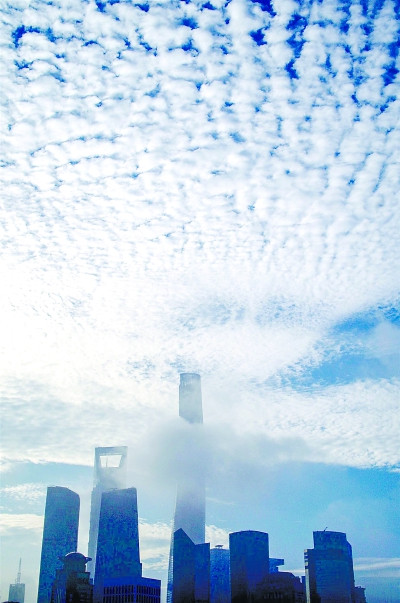 昨天,大洋上的臺風“遠程發功”,東南風吹拂下,上!八臁痹佻F,天空通透,各種形狀的云朵清澈潔白,隨風舒卷飄動。氣象部門還專門給出了“晚霞預報”,17:40至19:00之間,落日會伴有金色的晚霞,還有可能伴有曙暮輝。