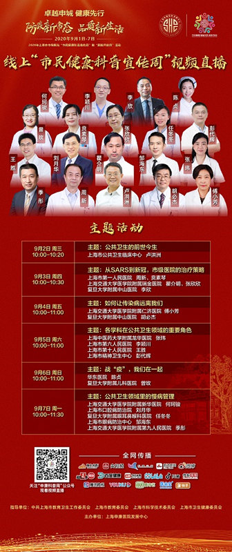 據悉,“上海申康”匯集39家市級醫院的優質資源,打造具有公信力的“上海市級醫院健康科普”網絡平臺,為市民們提供內容精準、形式豐富的健康科普“營養大餐”。其中,“申康科普周”是上海市市級醫院“市民健康科普宣傳周”和“醫院開放日”活動的官方微信服務號。9月2日至7日期間,每日推送一個科普話題,以直播形式進行科普宣傳,申康中心官網同步發布。通過圖文推送、視頻分享、在線直播等多種形式,匯集形成一份系統化、規;摹笆忻窠】抵R菜單”,借助新媒體形式進行線上展播,不斷推進上海市級醫院智慧科普、精準科普。其中,“公共衛生的前世今生”“各學科公共衛生領域的重要角色”等專題,帶領我們了解公共衛生的發展歷史與角色分工。“公共衛生領域里的慢病管理”“從SARS到新冠,市級醫院的治療策略”“如何讓傳染病遠離我們”等專題,讓我們對傳染病不再畏懼。