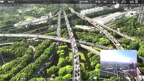 無人機實時圖傳閔行區莘莊立交路況畫面