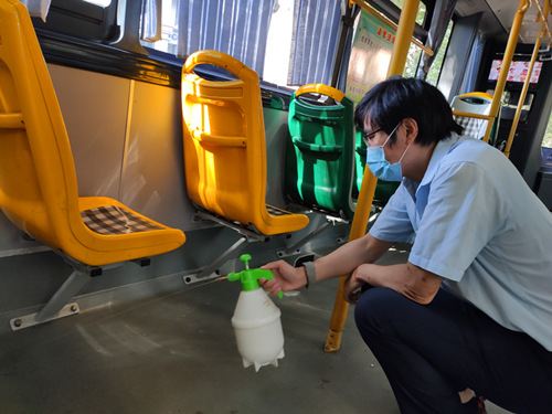 為保證學生乘車安全,學生專車采用“橫向到邊、縱向到底、豎向到頂”全面清潔消毒,對車輛內濾網、新風換氣裝置進行消毒,還對把手、座椅、扶桿等乘客密切接觸的位置進行二次重點消殺,行車途中全程保持車內開窗通風,為學子提供安全的乘車環境。除提供消毒保障外,車內熟悉的綠色暖心袋里也有了變化——新增了口罩、一次性手套、酒精棉片和免洗洗手液等防疫物品方便同學們取用,6路還將準備工作錄制成視頻進行推廣,讓家長和同學們可以安心復學。