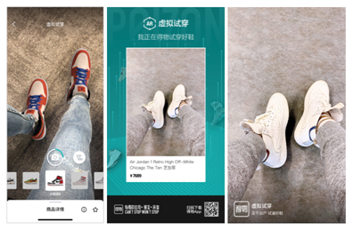 疫情期間,得物App上線的“AR虛擬試穿”功能也贏得了眾多年輕用戶的好評。用戶點擊選中鞋款并將手機攝像頭對準自己的雙腳,即可體驗“真實上腳”的效果。由于貼合度、真實性等達到““像素級”還原,用戶即便不出門用戶也能體驗到沉浸式的購物樂趣,這將在極大程度上加快用戶的購買決策,進一步促進線上消費行為。