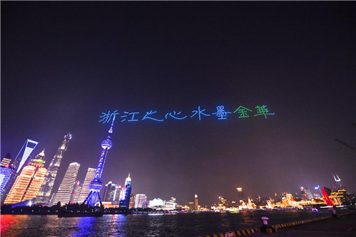 人民網上海9月20日電 (龔莎)9月19日晚,長達10多分鐘,由400多架無人機共同演繹的“浙江之心,水墨金華”無人機秀在黃浦江畔點亮,驚艷上海上空,為上海市民呈現了一場視覺盛宴。