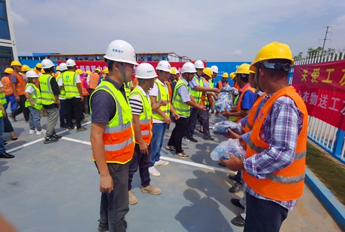 本次活動的愛心衣物都是由彩票公益金資助中國福利彩票捐贈的,都是防寒御冬新衣。項目部也為廣大工友準備了他們最喜歡的鹽汽水,并送上最誠摯的關懷與問候。為奮斗在一線的工友們帶來絲絲清爽,工友們在接到“愛心大禮包”時,開心的笑容都快從臉上溢了出來。