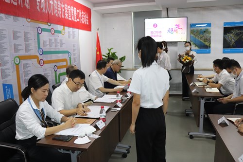 本次會議由事業部常務副總經理徐兵主持,事業部副總經理王呼強首先宣貫了事業部“超越計劃”專項培養方案。在全體人員的見證下,事業部各分管副總及部門經理依次抽簽選出了自己的徒弟。事業部副總經理段振文、王呼強作為導師代表和學員代表田媛、艾碧霞現場簽訂導師帶徒協議,學員代表向導師獻花以表達敬意。