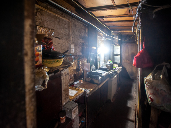 在今年上半年山壽里舊改地塊中,塘沽路124號,是居民李阿姨的家。破舊的木門里,一個簡單搭建的灶頭,一個只能沖澡的衛生間,沒有抽水馬桶,落滿灰塵的雜物堆滿角落。這間兩層的老房里共有3戶人家,都住在二樓,李阿姨和兒子蝸居在正中央的一個小房間里。一樓是公用的灶間,但由于面積實在太小,其中兩戶人家做飯的灶頭只好搭建在二樓的過道里,每到傍晚,老房里便煙熏火燎。最讓李阿姨無奈的是,每天都要上下坡度近60度的樓梯,雖然每次都小心翼翼地側身上下,但最近幾年,她仍從樓梯上摔下來近十次。