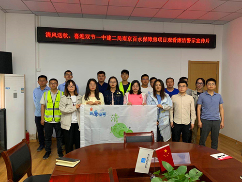 國慶、中秋雙節來臨之際,為進一步加強項目管理人員廉潔理念,9月26日中建二局華東公司南京百水工業園保障房一期項目組織全體管理人員進行了廉潔系列活動。