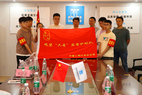 在距離南京大本營227公里的江蘇省鹽城市,黨建指導員攜2名黨建聯絡員赴萬華嘉府項目開展“兩個全覆蓋”推進會。在項目開工的伊始,項目班子和關鍵崗位人員在廉潔座談會上交流拒腐防變的故事心得,內化于心擰緊思想之弦;項目監督員佩戴火紅袖標,通過“攻堅‘六!O督護航隊”授旗儀式,外化于行踐行“六!北O督使命。