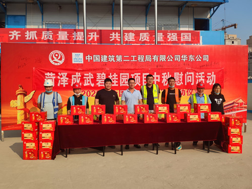 金秋送爽,丹桂飄香。中秋是中華民族的傳統佳節,在闔家共聚、慶祝團圓的日子,9月26日,中建二局華東公司菏澤成武碧桂園·永昌府項目部組織開展了中秋慰問活動,為堅守在崗位默默奉獻的一線工人送上了溫情的節日問候,并將精心準備的月餅發放到他們手中,讓大家感受到項目部大家庭的溫暖。月餅雖小,卻包含著濃濃的關愛,看著項目部派發的月餅,工人們高興不已,月餅非?煽、好吃,工人們拿著月餅,笑在臉上,樂在心里。