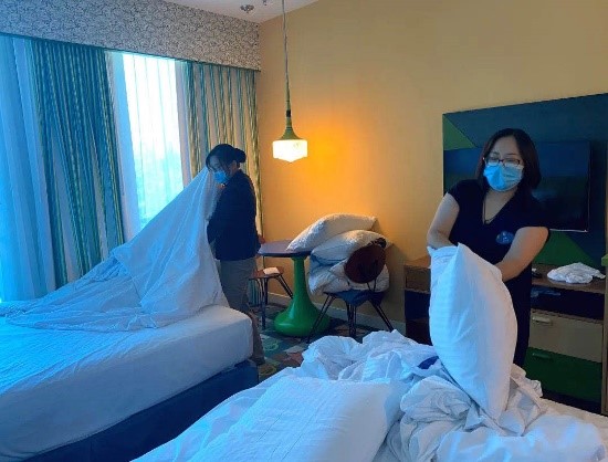進入八月盛夏,玩具總動員酒店迎來了疫情后的暑期大客流,客房部每天都要迎戰近600間的退房和新預定客人的入住。