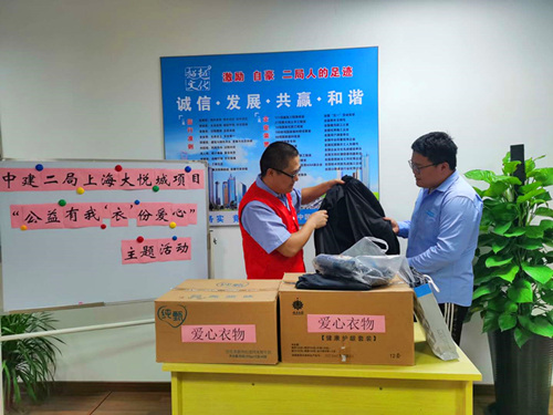天氣漸漸轉冷,為了給廣大工友獻上一份愛心,讓他們感受到項目部以及社會各界的關愛和幫助。10月15號下午3點,中建二局華東公司上海大悅城項目項舉辦主題為“公益有我,衣份愛心”的衣物捐贈活動。