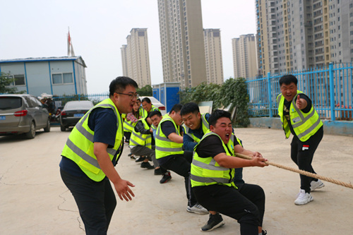 10月13日,為豐富員工精神文化生活,促進員工交流,發揚團隊精神,增強凝聚力,中建二局華東公司濟南融創文旅城酒店區項目舉辦趣味運動會,包括拔河、象棋、摜蛋、羽毛球等項目。