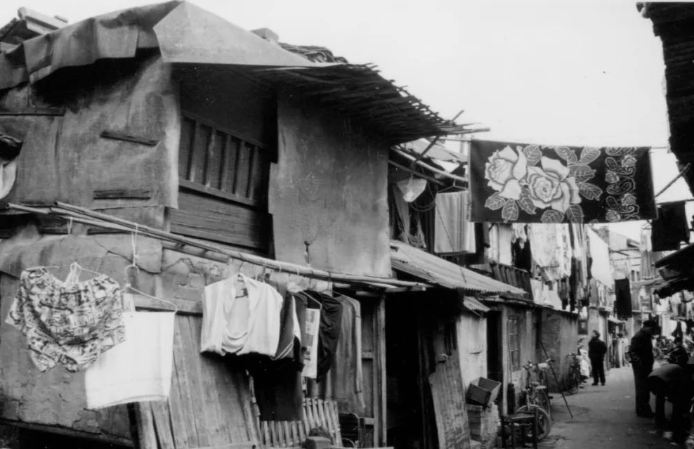 房屋之間間隔約一米,平日隔壁人家講話的聲音聽得很清楚,有的窗戶打開可以和隔壁人家握個手,甚至可以一只腳跨過去。斜三基地棚戶區居住面積非常小,子女多的人家只能睡灶間、打地鋪,冬天還好可以抱團取暖,到了夏天光著膀子打著扇子,晚上就睡在弄堂里,打鼾聲音此起彼伏。加上不遠處是全區垃圾、糞便轉運和裝船的日暉港碼頭,空氣中總散發著陣陣臭味,使得百姓生活不適、怨聲載道。
