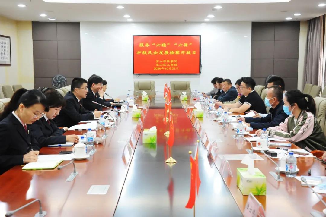 10月22日下午,一場涉企案件公開聽證會在寶山區檢察院進行。有一群特殊的人正在遠程旁聽這場聽證會,他們是區工商聯副主席蔣寧及十名來自各行各業的民營企業家代表。原來今天,他們受邀走進寶山區檢察院,參加“服務六穩六保 護航民企發展”為主題的檢察開放日活動。