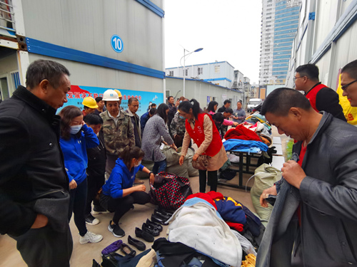 領到愛心衣物的工友李大姐表示:“太暖心了,今天領到了很多合身的衣服,感謝項目部的關心和愛心人士的幫助。有了這些衣服,省了不少錢,孩子的生活又能得到改善了!